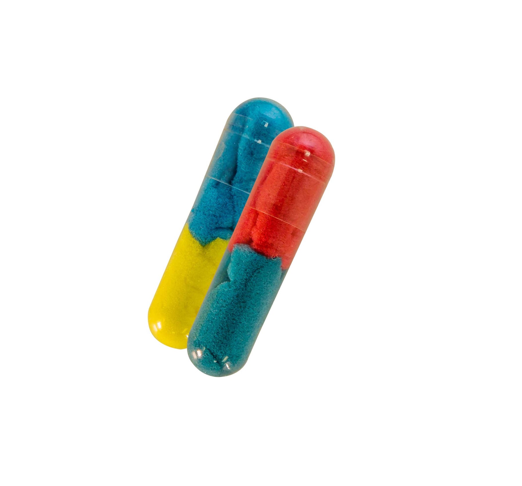 Magic food-grade gelatin capsules release two sponge toys from each capsule when dropped into warm water. Each pack contains two jumbo capsules and each capsule two sponge characters.
