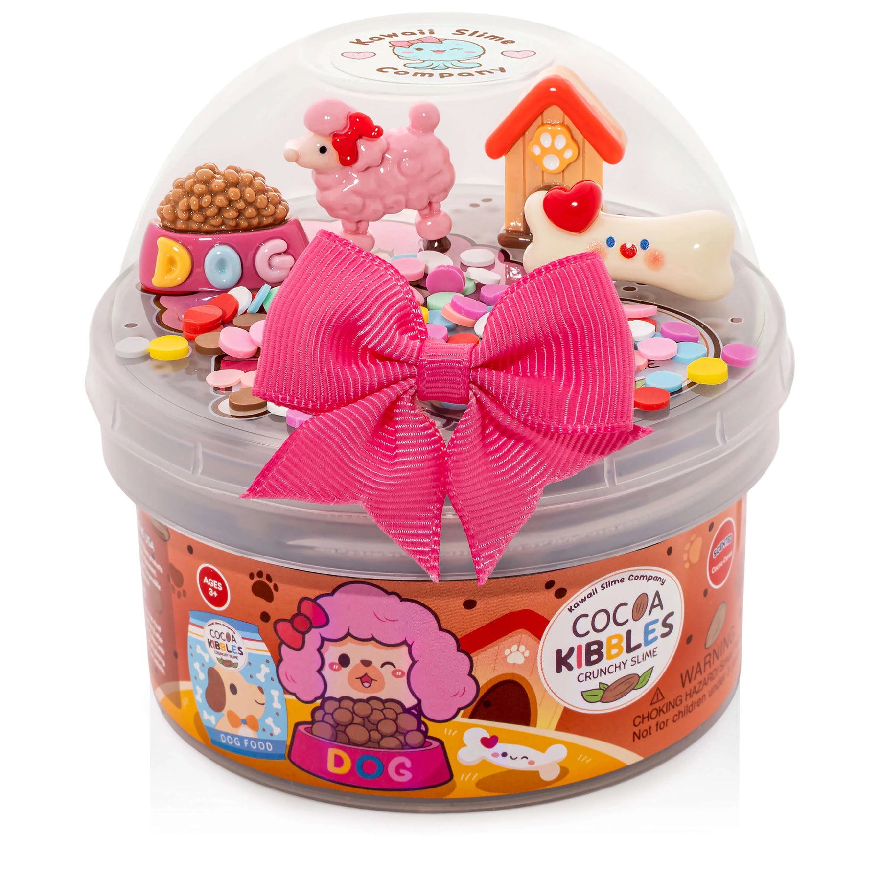 Get ready for a super snack-tastic slime adventure with Cocoa Kibbles Crunchy Slime! 🐾 This creamy white slime is packed with crunchy kibbles that make the best snap, crackle, and popjust like your favorite cocoa cereal! 🍫 Plus, it smells so yummy and cozy, you’ll want to squish it all day long. Inside, you’ll find cute charms like a fluffy poodle, a bone, a fun dog house, and a tasty dog treat, all mixed with colorful sprinkle fimos for extra silly fun. With its crunchy texture and stretchy goodness, Cocoa Kibbles is perfect for tons of squishy, crunchy playtime!