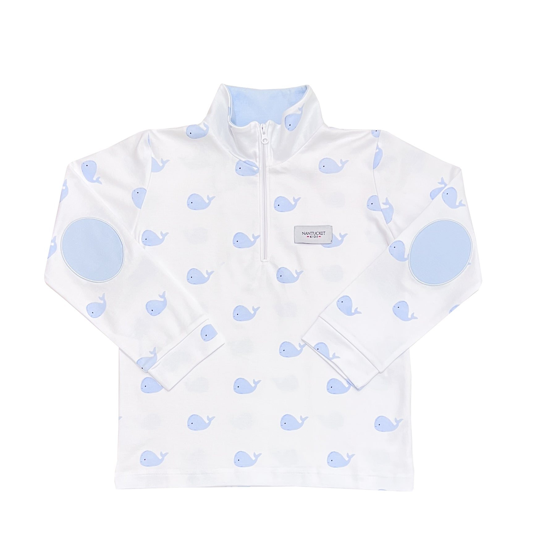Meet our Whale Watch  Quarter Zip — the perfect year-round layer. Made from 100% Pima cotton, this all-season staple is soft, breathable, and built to last. The classic quarter-zip style makes dressing easy and our signature whale pattern adds a fun, coastal touch parents and kids love.