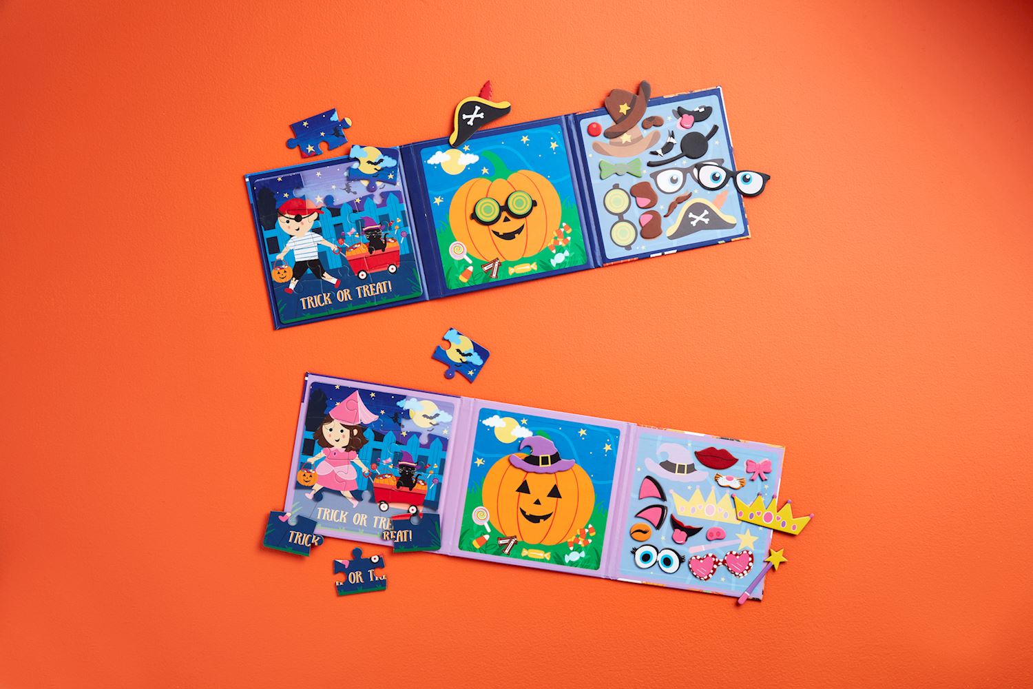 he Blue Dress My Pumpkin Puzzle Set is a fantastic addition to any child's toy collection. This 25-piece set includes a magnetic jack-o-lantern and a variety of magnet accessories, allowing kids to create their own unique pumpkin designs. One of the standout features of this puzzle set is its portability. With its compact size, it is perfect for travel, making it an ideal companion for long car rides or plane trips. Designed for children ages 3 and up, this puzzle set is not only entertaining but also helps develop fine motor skills and hand-eye coordination. As kids manipulate the magnetic pieces, they will improve their dexterity and problem-solving abilities. The Blue Dress My Pumpkin Puzzle Set measures 7" x 7" and is made from high-quality paper, ensuring durability and longevity. Its vibrant blue dress design adds a touch of whimsy and charm to the puzzle, making it visually appealing to children. Overall, the Blue Dress My Pumpkin Puzzle Set is a must-have toy for young children. Its magnetic jack-o-lantern and accessories provide endless creative possibilities, while its compact size and durable construction make it perfect for on-the-go fun.