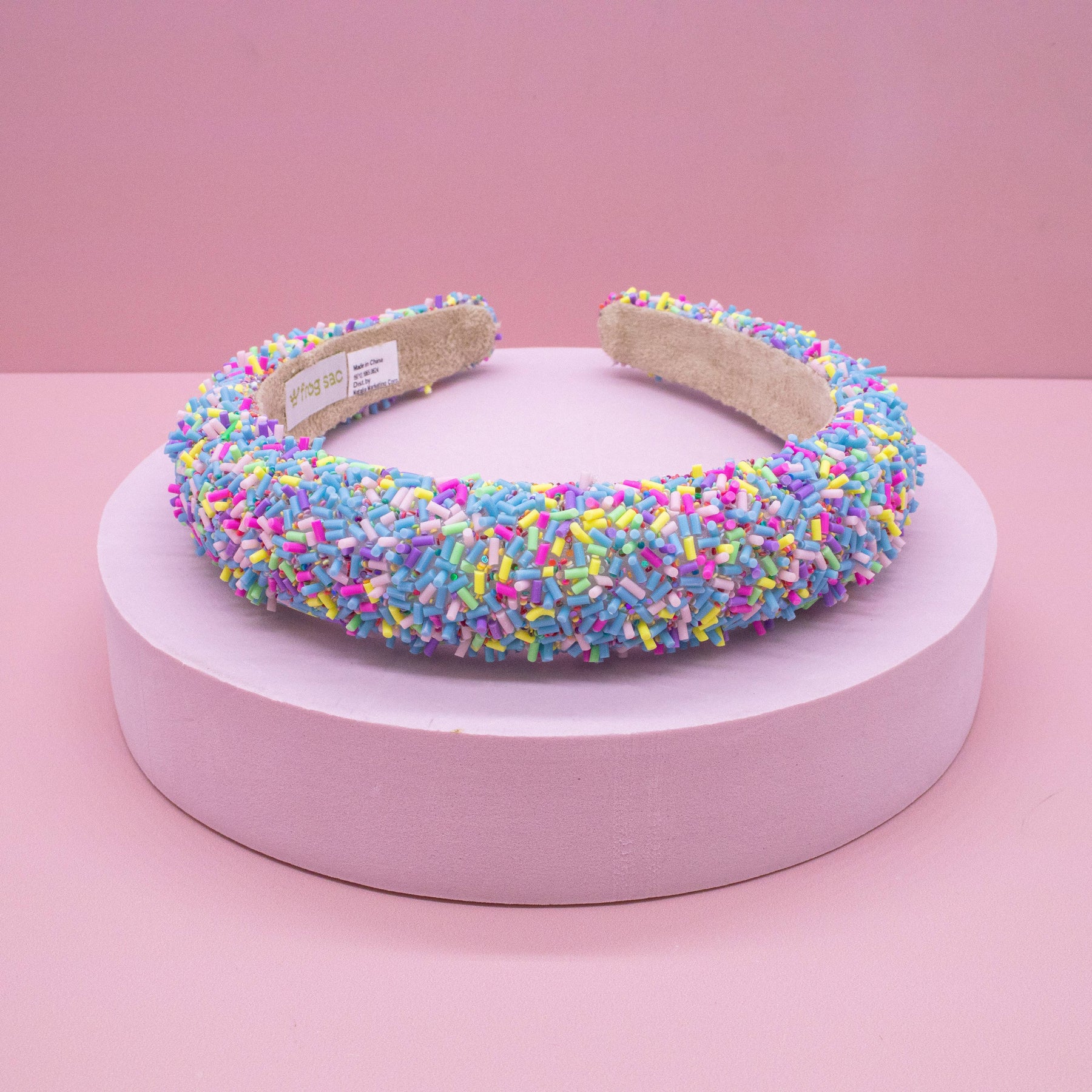 * Puffy tapered headband for girls * Embellished with rainbow confetti sprinkles * Flexible band with a comfortable inner lining * 13 inch circumference to best fit toddlers to tweens