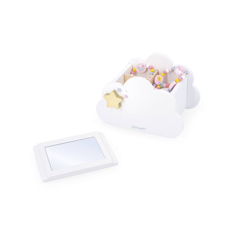 Thanks to this pretty surprise-filled box, children will be able to carefully store their jewelry, unicorn accessories and many other small gems! The cloud-shaped jewelry box is practical, magic and pretty, all at the same time. Use the star to open the lid and reveal a secret drawer within! Contains a unicorn-themed bracelet and necklace. Wood toy made for children ages 3 and up.