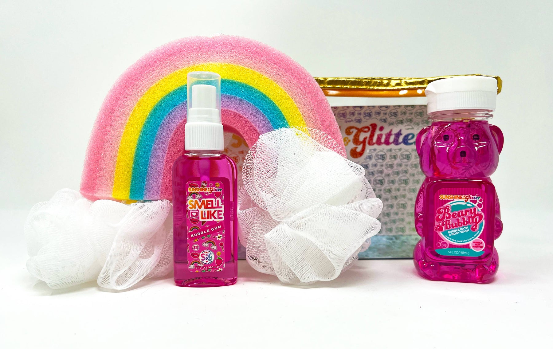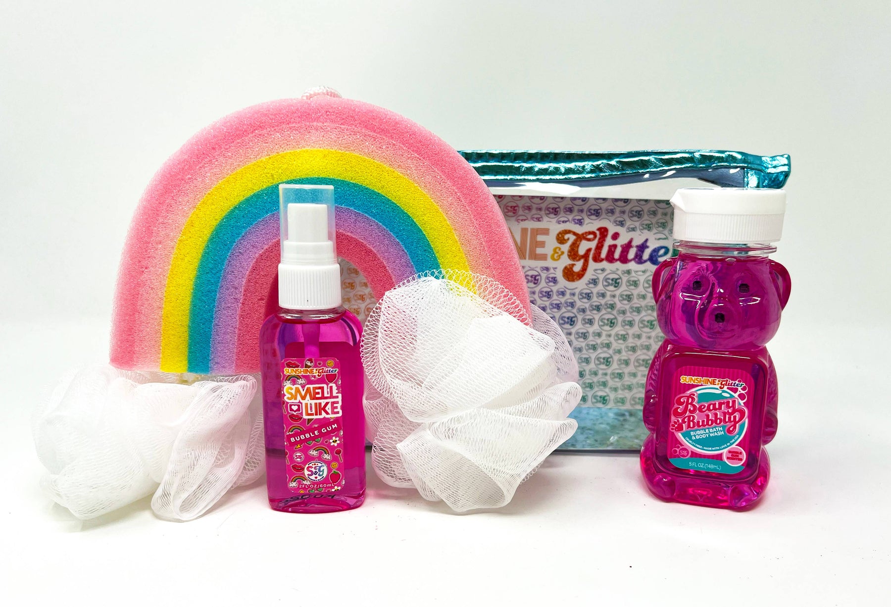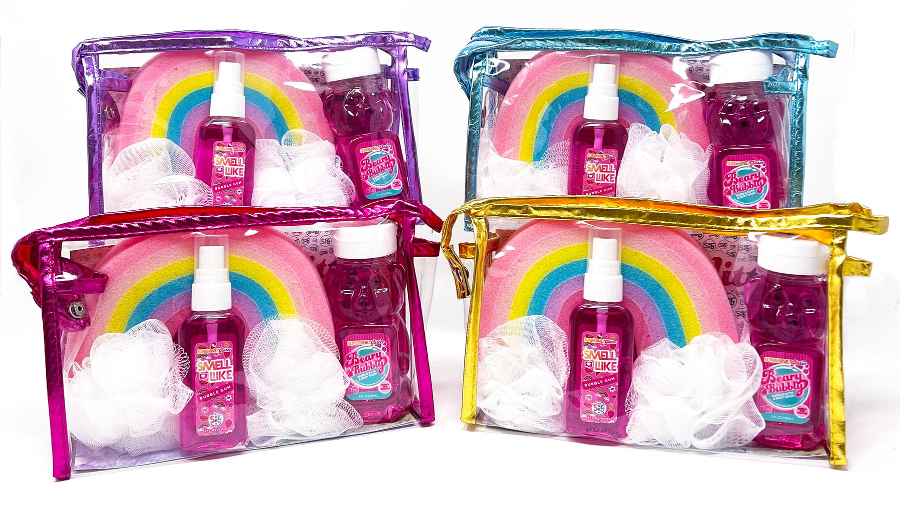 SO CUTE AND SMELLS AMAZING! This BUBBLE GUM SCENTED bubbly fun gift set is just the best! And with our travel bag you can bring the fun wherever you go!