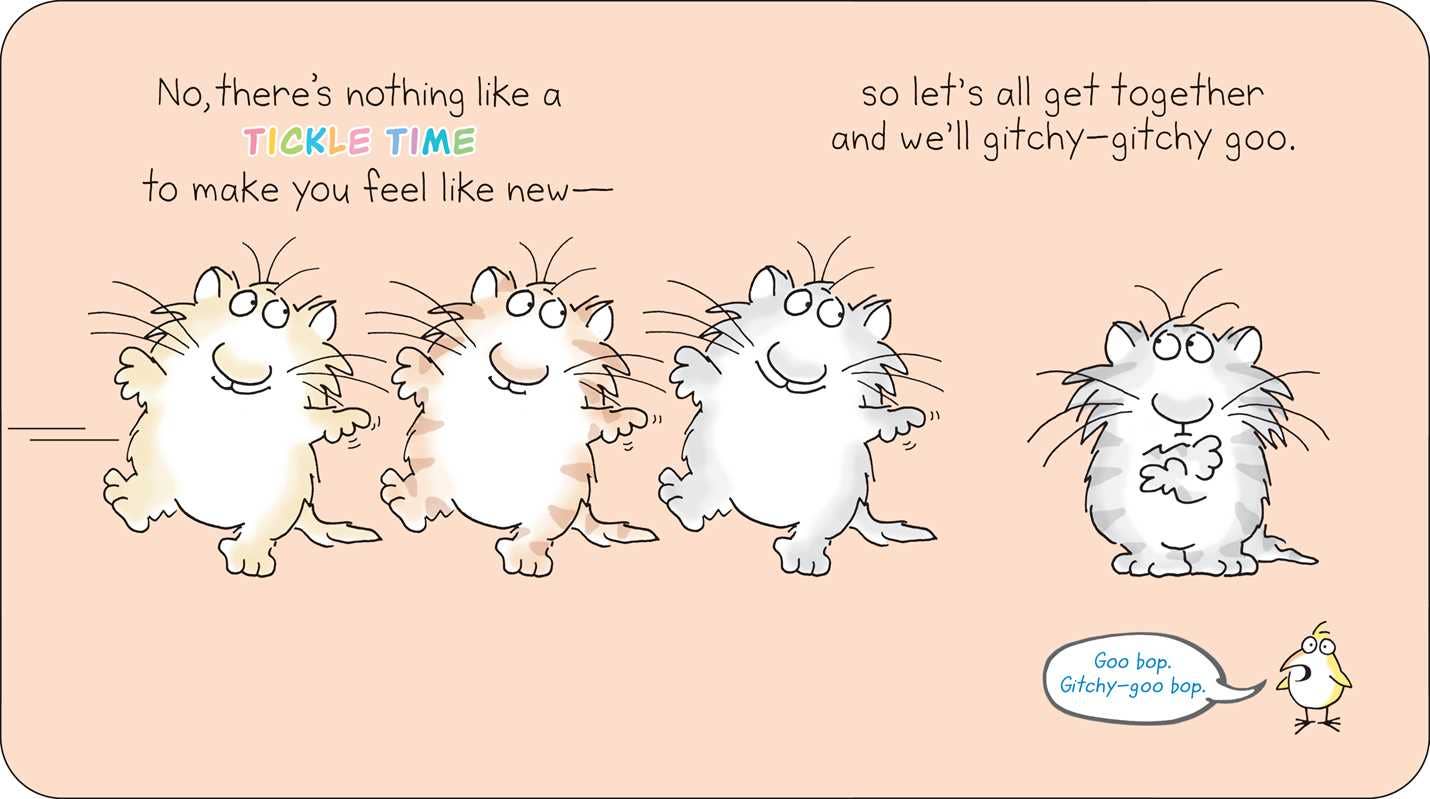 Based on the wildly popular song from Boynton's wildly popular Rhinoceros Tap book and CD set, Tickle Time! is pure irrepressible Boynton: lively in tempo, nimble in rhyme, and filled with irresistible fuzzy cats that cavort from page to page. Plus a few birds, who aren't the cavorting type. Here's a book guaranteed to elicit giggles. GOTTA GITCHY-GITCHY GOO!